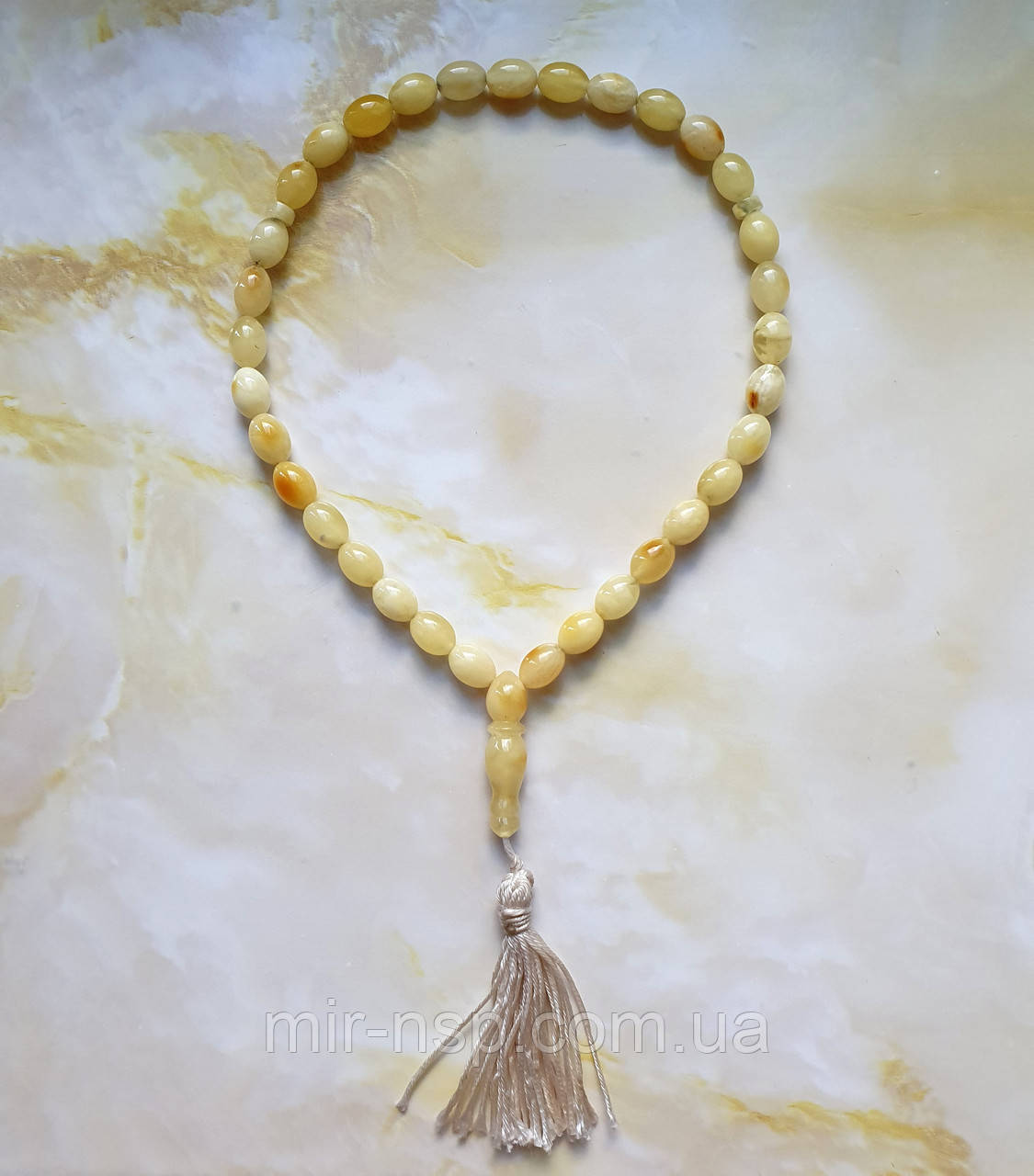 Чітки 33 намистини натуральний матовий природний бурштин олива (не прес, не плавка), пр-во Україна, ручна робота, дуже приємні та гарні