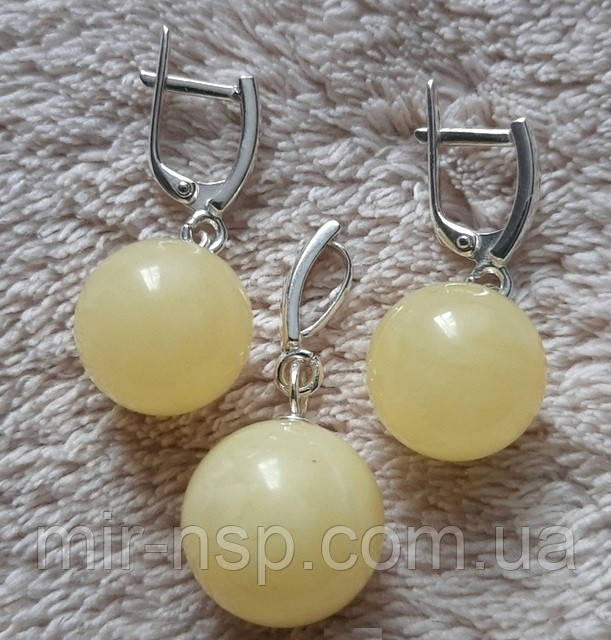 Набір Сережки та Кулон з 100% натурального пейзажного бурштину вага 8,5 г кулі 14 і 16 мм