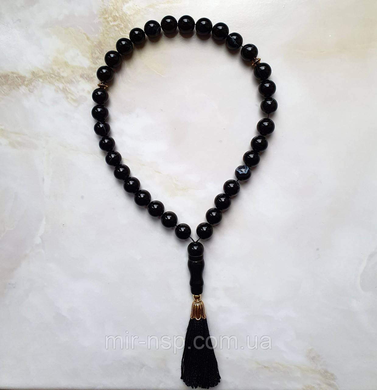 Чотки 33 намистини натуральний чорний агат (не прес) 10 мм вага 54 г