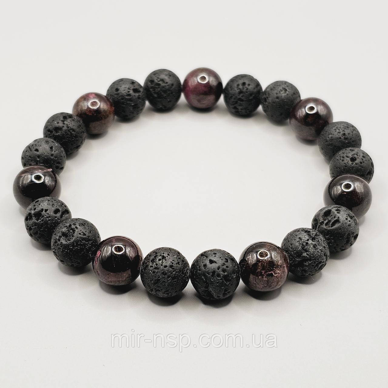 Браслет 100% натуральні лава та гранат, вир-во Україна