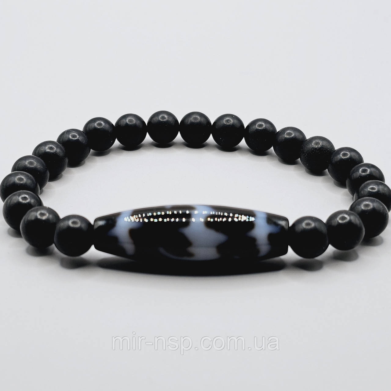 Матеріал: натуральний камінь шунгіт, діаметр намистин 8 мм, намистина Дзи з агату